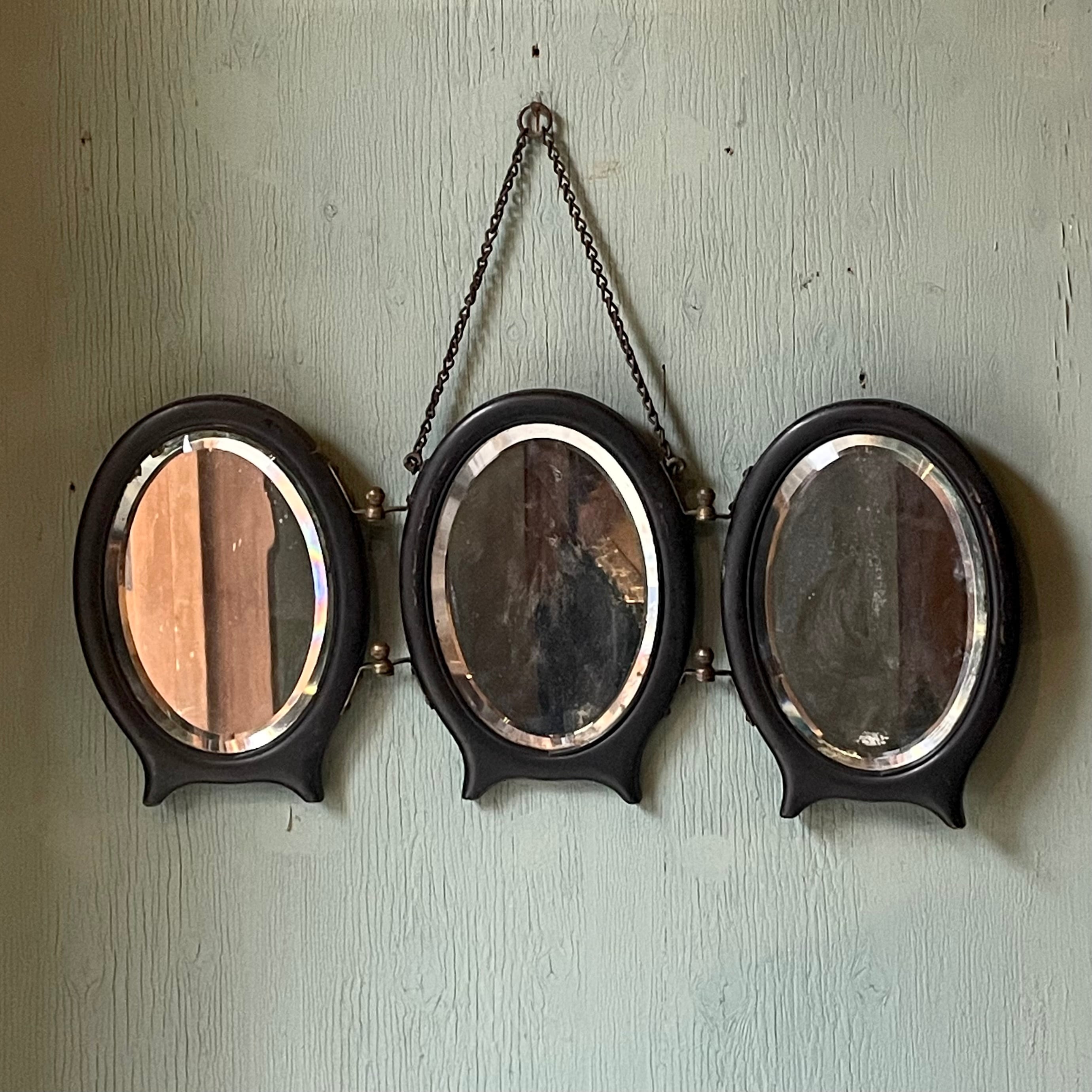 Antique Wooden Three Fold Mirror