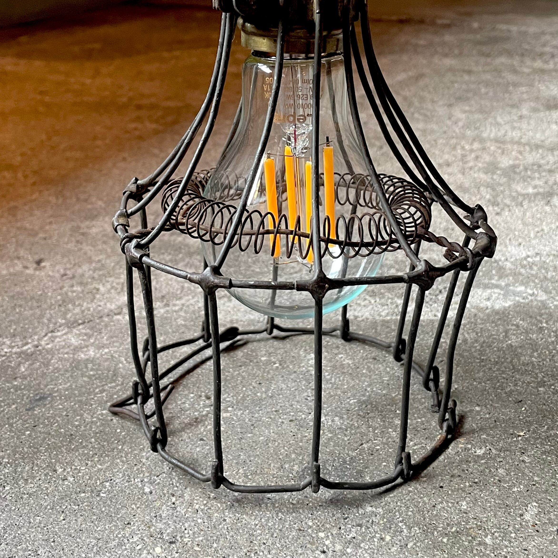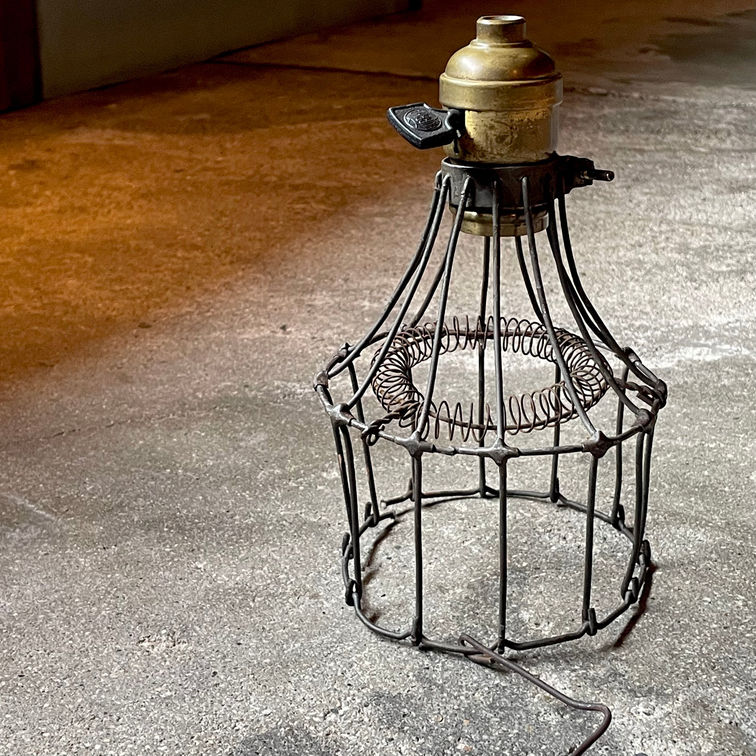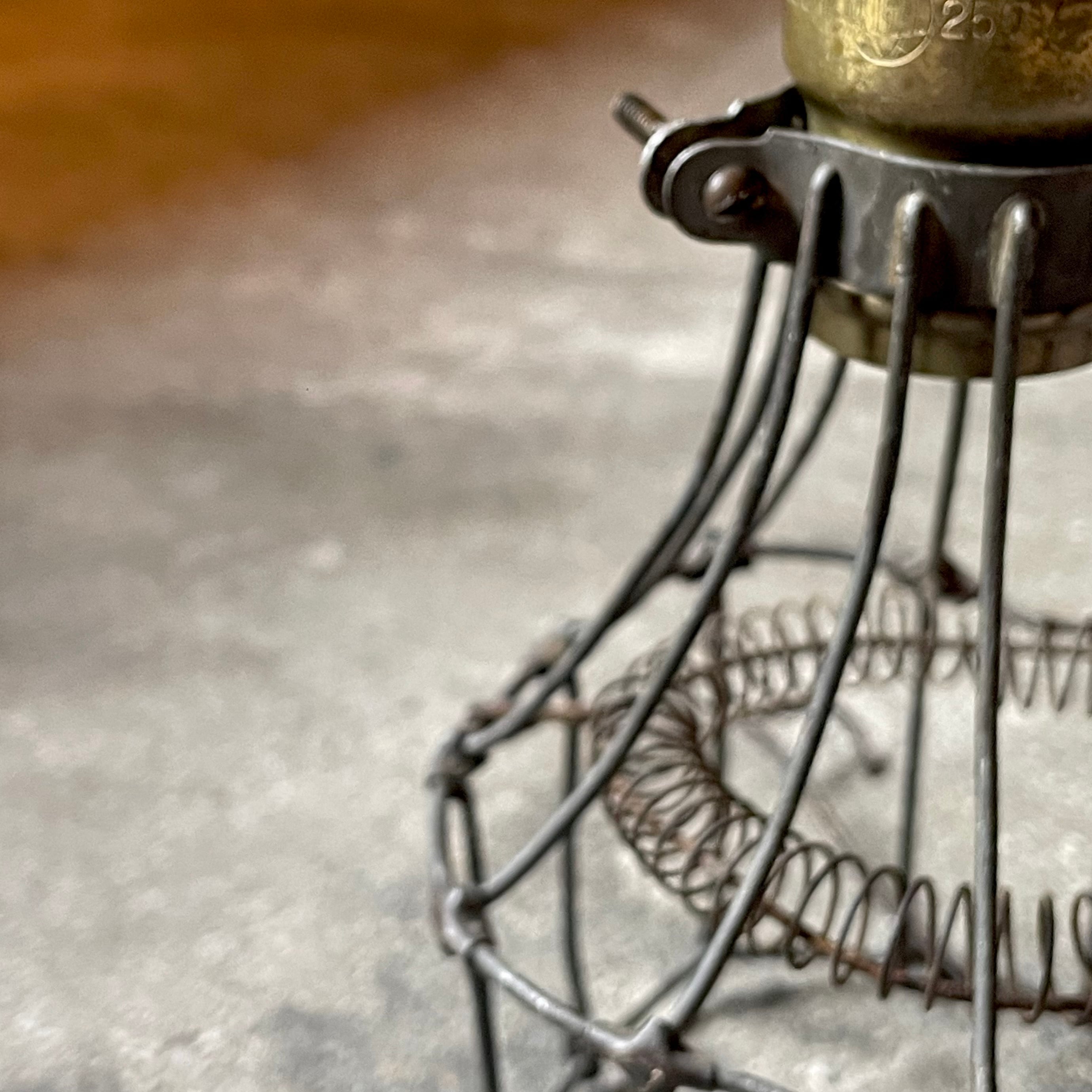 アンティークのワイヤーランプガードとアンティークソケットのセットです