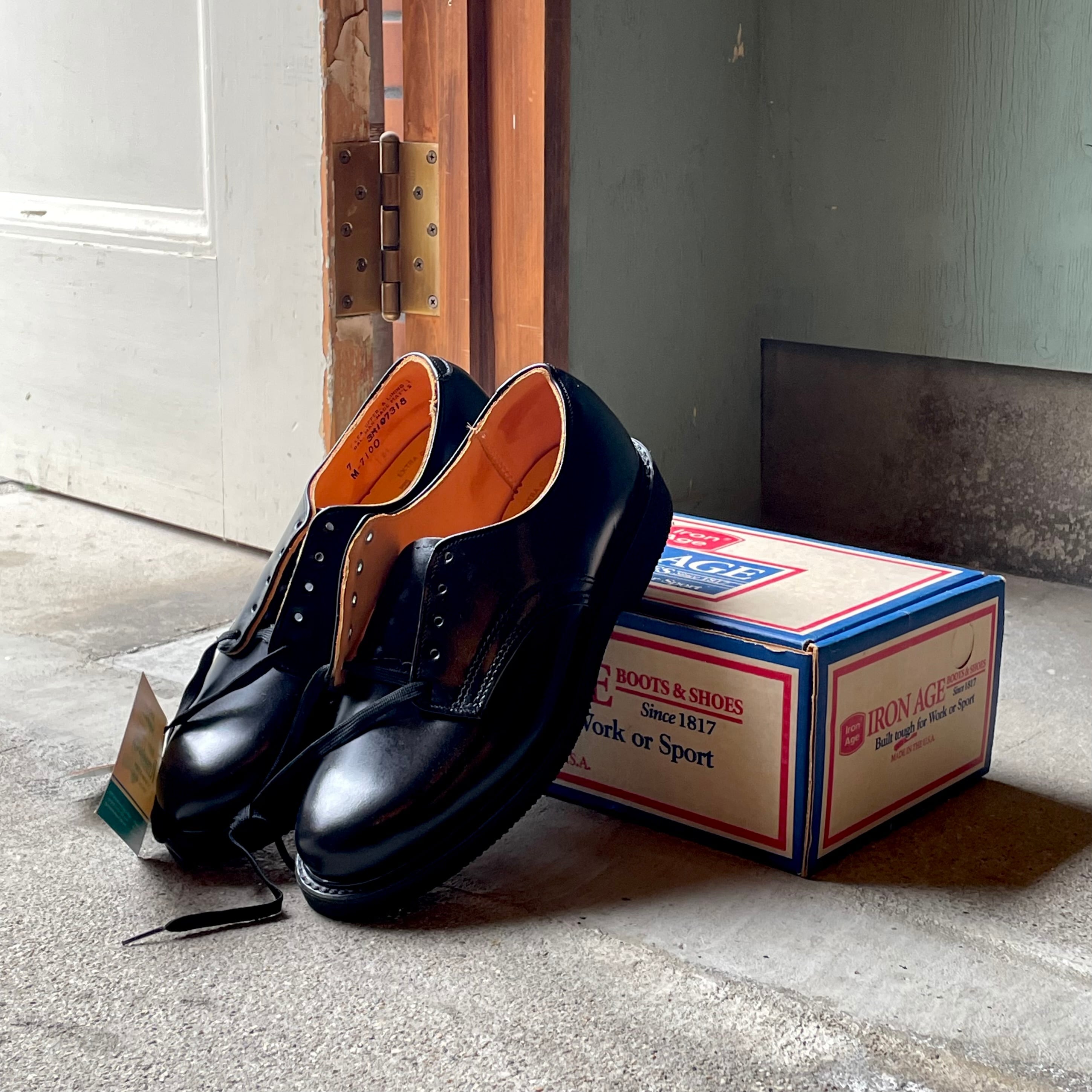 安全靴で有名なIRON AGEのプレーントゥの箱付きデッドストックです